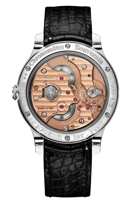 Il vero dialogo con il passato avviene però sul retro, attraverso il movimento. Il calibro manuale (Calibre 1304), realizzato in oro massiccio come da tradizione F.P. Journe, rappresenta una sintesi magistrale di tecnica e filosofia. Le grandi ruote del treno del tempo, la disposizione razionale dei ponti, la cura maniacale delle finiture raccontano un linguaggio che Journe ha reso immediatamente riconoscibile. In questa edizione celebrativa non ci sono rivoluzioni, ma affinamenti silenziosi, come accade nelle grandi opere che non hanno bisogno di stravolgimenti per restare attuali.