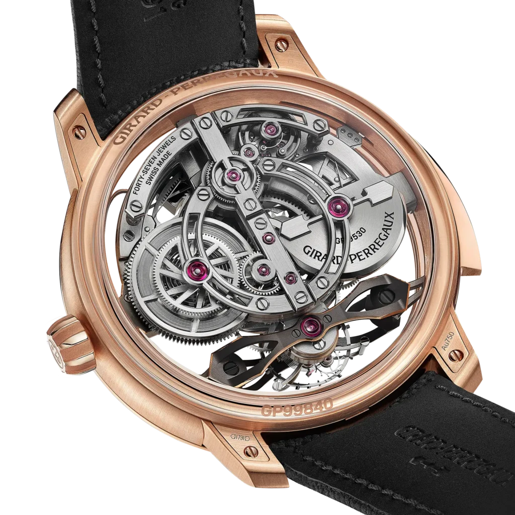 Quando si parla di Girard-Perregaux, è impossibile non pensare alla celebre architettura dei ponti. Fin dal XIX secolo il marchio ha trasformato un elemento puramente tecnico del movimento in una firma estetica riconoscibile. Con la collezione Flying Bridges, questa tradizione viene reinterpretata in chiave contemporanea, portando i ponti sul lato frontale dell’orologio e rendendoli protagonisti assoluti.