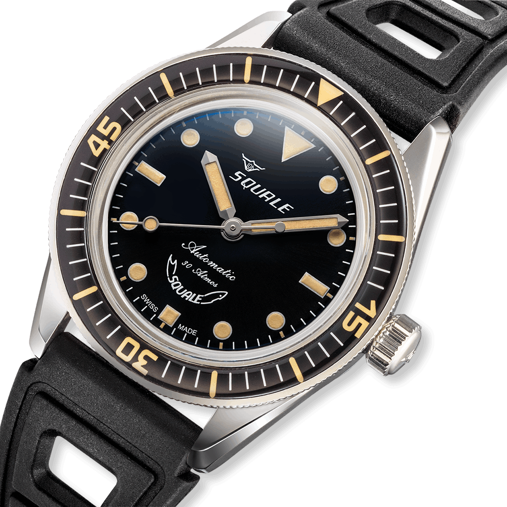 Per capire davvero questo orologio bisogna fare un passo indietro. Squale non è un nome costruito a tavolino, ma uno di quei marchi che hanno vissuto l’epoca in cui i diver erano strumenti veri, pensati per lavorare sott’acqua, non per apparire. Negli anni ’60 e ’70 le casse Squale venivano fornite anche ad altri brand, ed erano sinonimo di robustezza e funzionalità. Il Sub-37 non è una reinterpretazione nostalgica, ma una sorta di ritorno a quella logica progettuale, adattata al presente senza forzature.